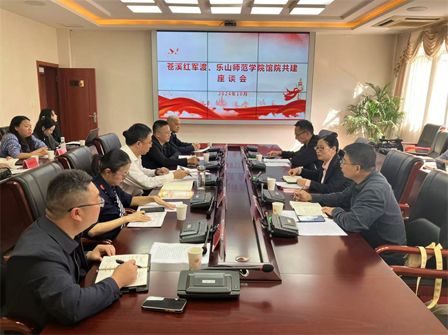 座谈会上,旅地学院一行首先观看了《红色苍溪》宣传片,对苍溪县丰富的红色文化资源有了更为直观和深入的了解。随后,苍溪县红军渡景区事务中心详细介绍了馆院共建工作的进展情况。双方代表就共建事宜进行了充分的交流,并现场签署了馆院共建协议。