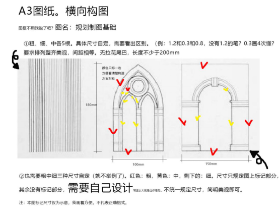 网络授课几周后发现,直播课上,学生集中性不高,对于知识的抓取不准确,很多问题反复直播强调还是会有走神、不清楚的情况出现。一开始采用线上答疑方式,学生如果错过一定时间段,再去聊天记录里面查找,因为信息过多,可能就无法找到相关信息了。所以在第五周授课之后,宋老师改变了布置作业方式,采用布置制图的形式。以工具线条制图基础举例:
