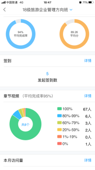 对于上课环节,各个老师采用不同的软件,上课的方式会略有不同,我用的是“超星”平台。由于考虑到软件平台稳定性、学生家里网络问题,我采用的是录播的形式给学生上课。课前我会录制1个小时左右的ppt讲解视频,放到超星平台上,设置上课时间,学生进行自主学习。同时,在课前我也会做签到,这样就能确保、督促每个学生按时学习。