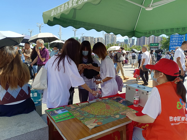 此次志愿服务为旅游学院与乐山市市中区团委合作,共计招募了30名志愿者前往乐山市境内的苏稽古镇,张公桥,绿心公园,高铁站和乐山港设立了5个“旅游资询点”,为外来的游客提供咨询服务以及帮助。在这几天的志愿服务中,志愿者们充分体现了积极热情、助人为乐的良好风尚,尽管夏日的酷暑还没有完全消散,天气依然比较炎热,但志愿者们不怕困难,顶着炎炎烈日,将最好的一面展现给了外来的游客,为他们解决了一个个问题,赢得了游客的一致赞赏。