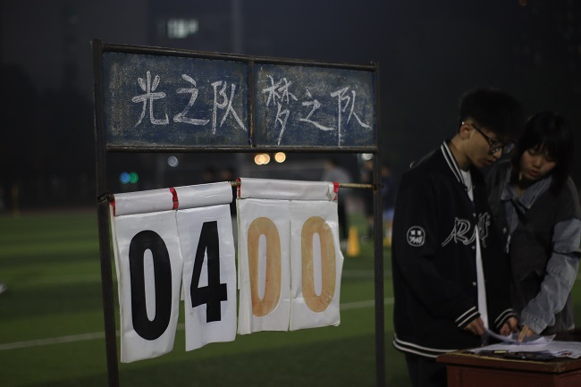 裁判一声哨响,两支球队展开了激烈的角逐。球员们个个精神饱满、奋力拼搏,就算摔倒也不叫苦,毫不犹豫站起来继续投入比赛,争先恐后来回传球。场下观众同样激情满满,挥舞院旗大喊“青春旅游,力争上游”,给场上队员鼓舞士气。最终,旅游学院和马克思主义学院队以4:0的比分赢得本场比赛。