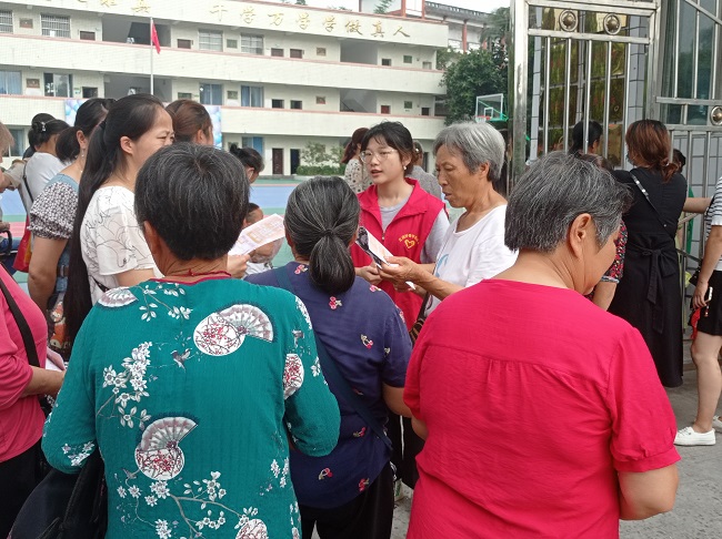 为了让更多的留守儿童参与到暑假公益班中来,团队将线上和线下两种宣传方式充分结合,在线上宣传和预报名后,该团队发现金山镇文化站服务站点知晓该活动的家庭较少,于是7月3日该团队便前往了该地小学进行实地活动宣传。