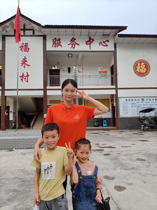 “同心燃梦”服务队志愿者从学校出发,来到马边福来村,与村里的小朋友们愉快会面。团队领队向福来村村支部书记简永芬和小朋友们介绍了本次志愿活动的内容及意义,用一个户外小游戏让小朋友们和团队成员相互熟悉。