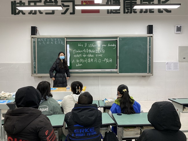 刚开始没有任何教学经验,也不知这边的孩子是否喜欢我这个老师。终于走上了讲台,孩子们眼里的期待,让我充满力量。为了能提高他们的学习兴趣,我想了很多办法,比如书写比赛,在我的教导下他们的单词普遍写得很好。每次我的课前,他们都会主动早读。他们的变化是我来这里最大的收获。