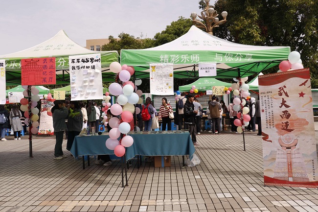 本次活动特设武大西迁乐山历史展厅,展示武大西迁乐山的办学历程。“我想对母校说”活动以向学校高等教育办学45周年献礼为主题,抒发了同学们的爱校荣校情怀。此外,此次旅游嘉年华还以湖南长沙、浙江嘉兴、江西南昌、陕西延安、江苏南京、湖北武汉、贵州遵义7个红色旅游文化名城为主线,为全校师生搭建了一座红旅文化长廊,打造了一场革命城市文化与民族特色相结合的大型展示活动,引领广大师生传承红色精神,汲取奋进力量。慷慨激昂的红色故事、精美的装饰、别具特色的美食、参与性极强的活动等,吸引了众多同学前去聆听红色历史故事,发扬红色精神,领悟美好生活的来之不易,为全校师生呈现了一场别开生面的红色文旅与美食盛会。