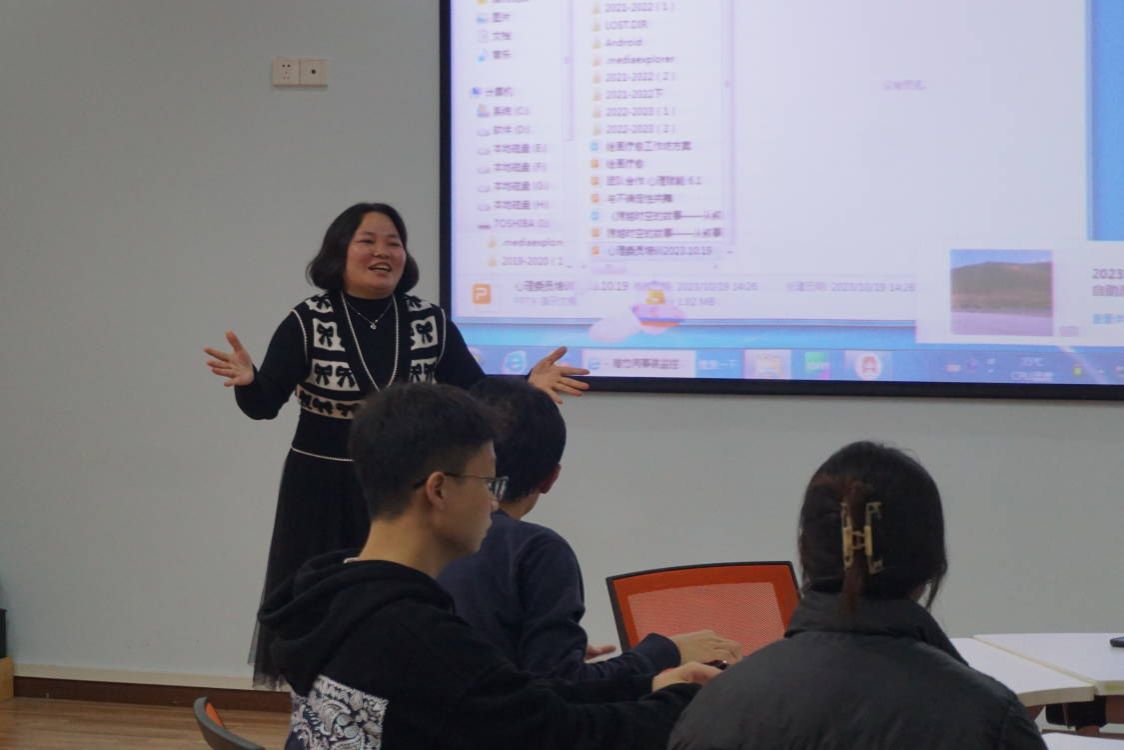 朱文闻老师从常见大学生心理异常的识别讲起,为大家介绍了心理危机预防知识。她通过一些活动、事例引导大家思考、讨论如何正确识别、解决大学生出现的心理健康问题。朱文闻老师希望大家能够正确理解和对待大学生心理危机。