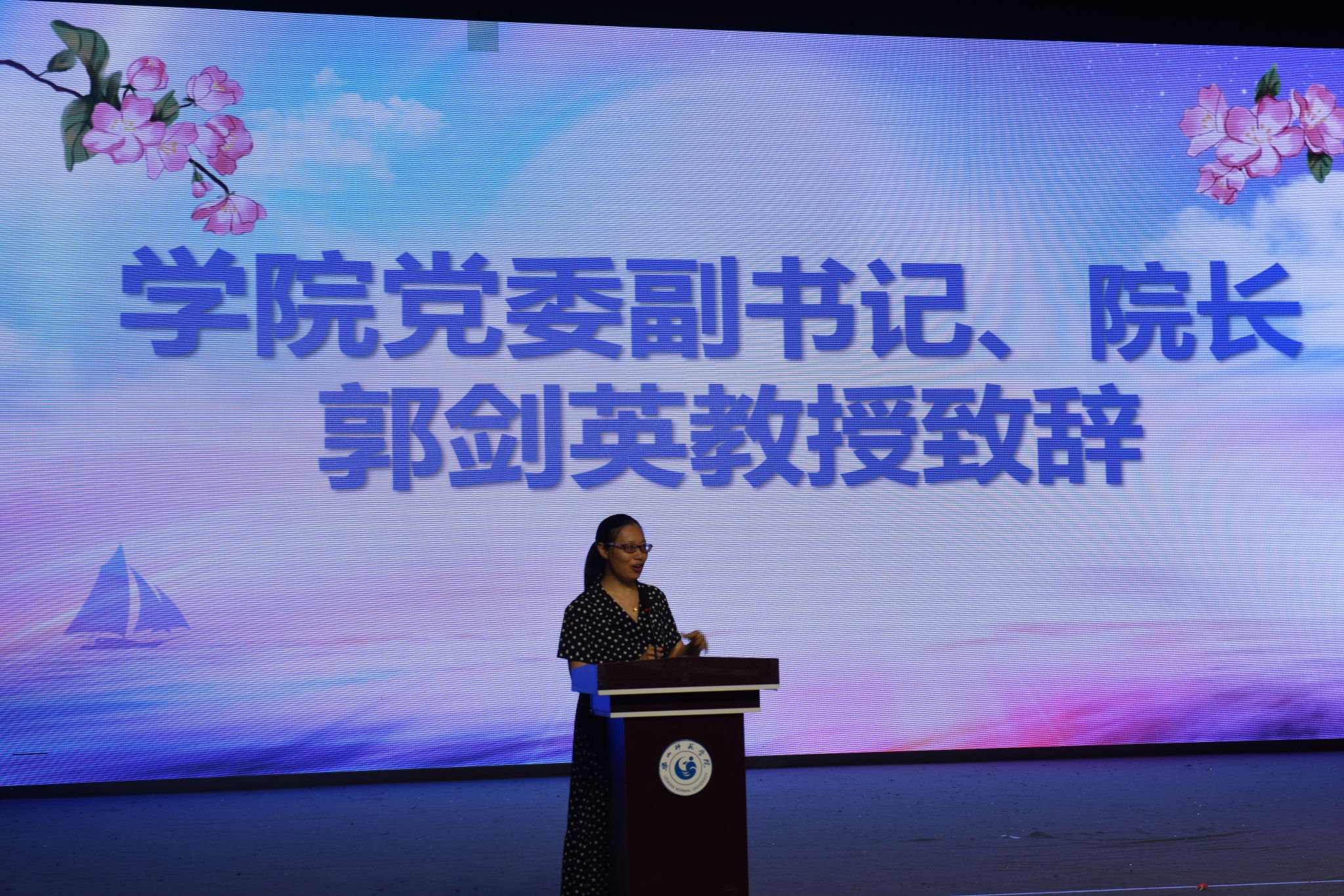 弦乐三重奏缓缓响起,欢送会正式拉开帷幕。郭剑英致辞,祝愿24届毕业生毕业快乐,不负韶华,走向人生的巅峰。她对24届毕业生寄予了殷切的期望,希望同学们树立终生学习的理念,明确自己的目标和人生规划。教师代表乔恒忠作了发言,希望同学们尽快转变角色融入社会,不断拼搏学习,成为一个眼里有光的人。随后,非毕业生代表杨霜对师兄师姐表达了衷心的祝福,并表示将以学长学姐为榜样,继续努力,为学院发展作出贡献。