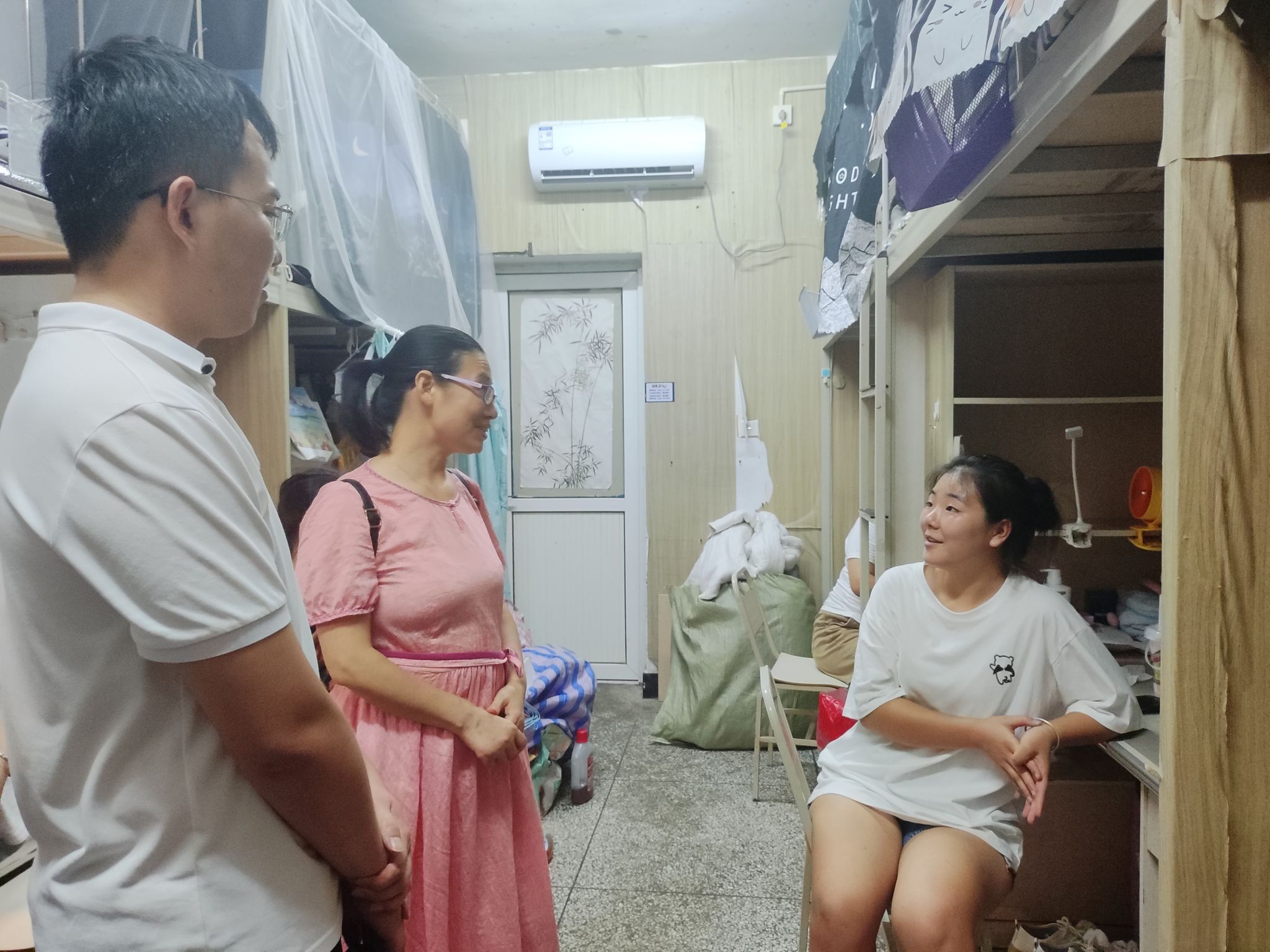本网讯(文/刘涛、图/张雯、杨洋、卿婷)为关心学生成长,了解学生思想动态,8月31日下午,BB贝博艾弗森官方网站党委书记徐秀云,党委副书记、院长郭剑英,分团委书记江纳和辅导员老师们及部分学生干部分别走访了男生院学三、学四、百二幢和百七幢学生宿舍2022级专升本同学。