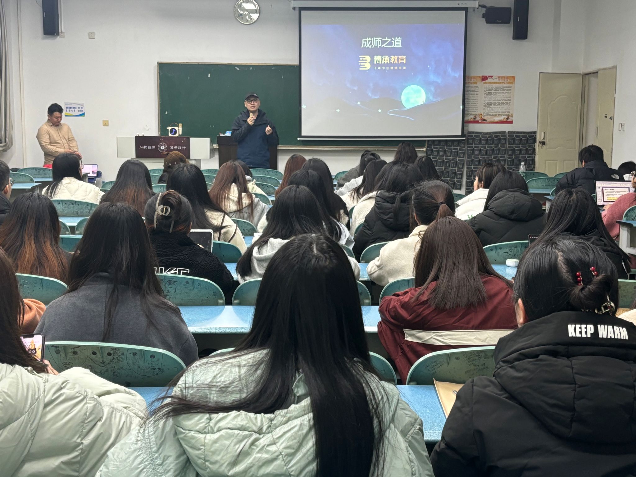 最后,秦飞从人数、要求、考情等方面讲解了怎样成为一名老师,并告诉同学们要早做规划,定目标、定方向、早行动。
