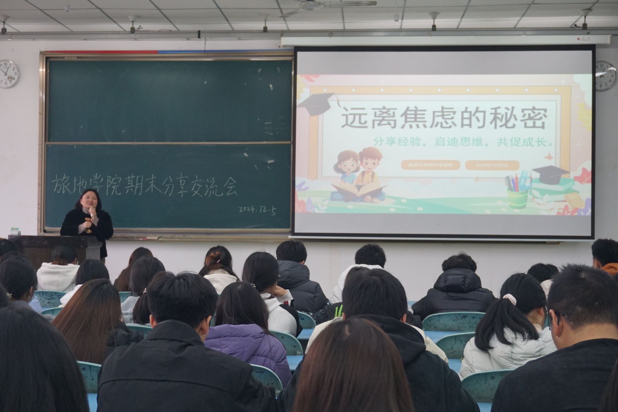 本网讯(文/陈淼、图/吴航)12月5日中午,BB贝博艾弗森官方网站在行知楼325教室举行了以“远离焦虑的秘密”为主题的期末分享交流会。学院分团委书记、学生工作办公室主任、24级辅导员江纳,23级各专业优秀学生代表和24级全体同学参加了此次活动。