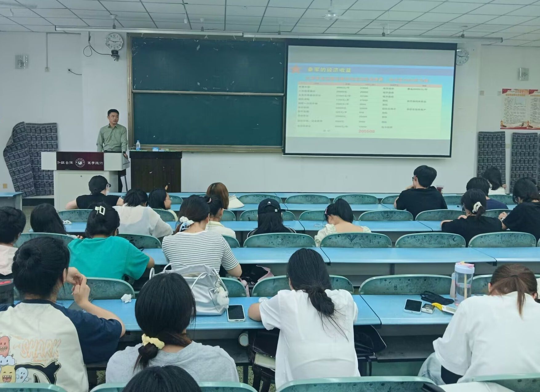 本网讯(文、图/刘瑞)为积极响应国家征兵号召,鼓励大学生投身军旅、报效祖国,BB贝博艾弗森官方网站于5月22日下午在行知楼225教室为22级学生举办了一场征兵政策宣传讲座。本次讲座由学校征兵办的邹果老师主讲。