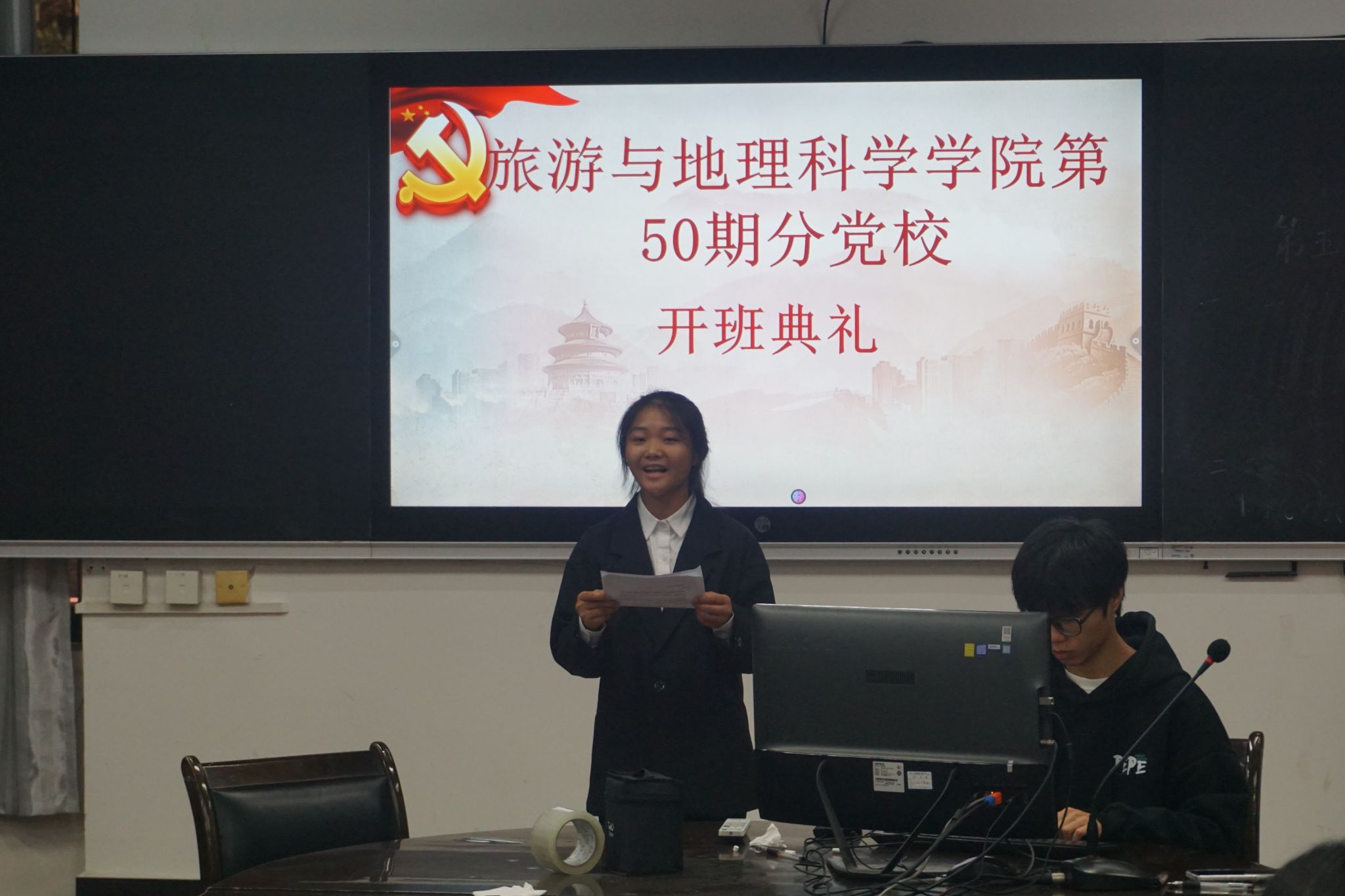 本网讯(文/邓伟祥、图/杨光)10月31日,BB贝博艾弗森官方网站第50期分党校开班典礼于旅院楼102教室隆重举行。学院专职组织员、第一学生党支部书记孟凡帅,学院第50期分党校全体学员参加了开班典礼。