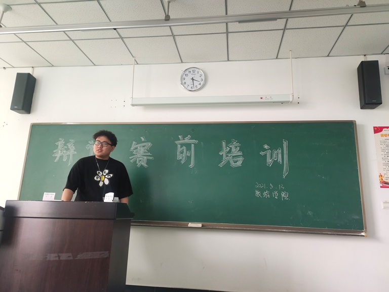 许铁城、陈翔宇分别讲解了辩论赛赛制、辩论素养,以及赛前需要准备的资料,并与辩手观看了一段辩论赛赛事视频。之后许铁城、陈翔宇带领辩手按小组进行辩论赛实地模拟演练。演练中正反双方辩手以清晰的思路和巧妙的陈词展示了自己的想法。最后,许铁城、陈翔宇对本次演练做了点评,指出了双方优点和不足,并表示期待大家在5月20日复赛场上的精彩表现。
