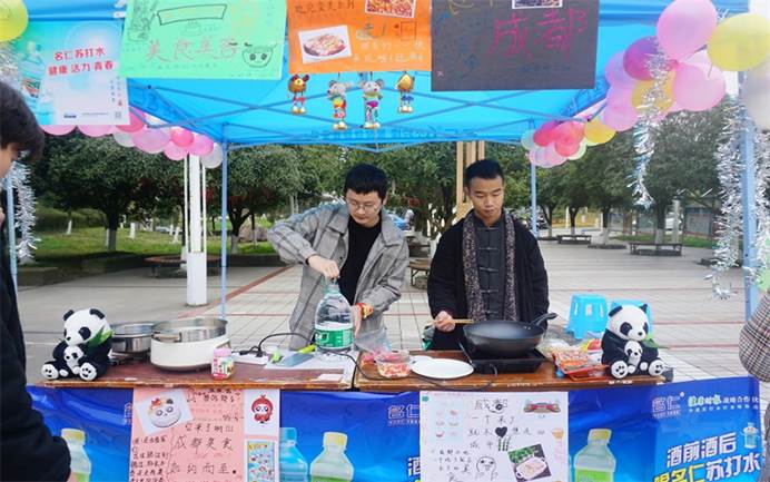 紧接着,礼仪队的礼仪展示、汉服社的舞蹈,轮滑社酷炫的轮滑表演等一系列节目带动着现场气氛。随后,宋天华陪同李东、黄显刚和罗刚参观了各个展厅的布置与游戏活动。每个展厅各具特色,不仅有来自各地的地方特产,重庆火锅、成都麻辣烫浓香四溢,西安龙须糖、普尔话梅挑动味蕾。而且还有有趣的游戏,正话反说、夹弹珠、连连看使人乐在其中。