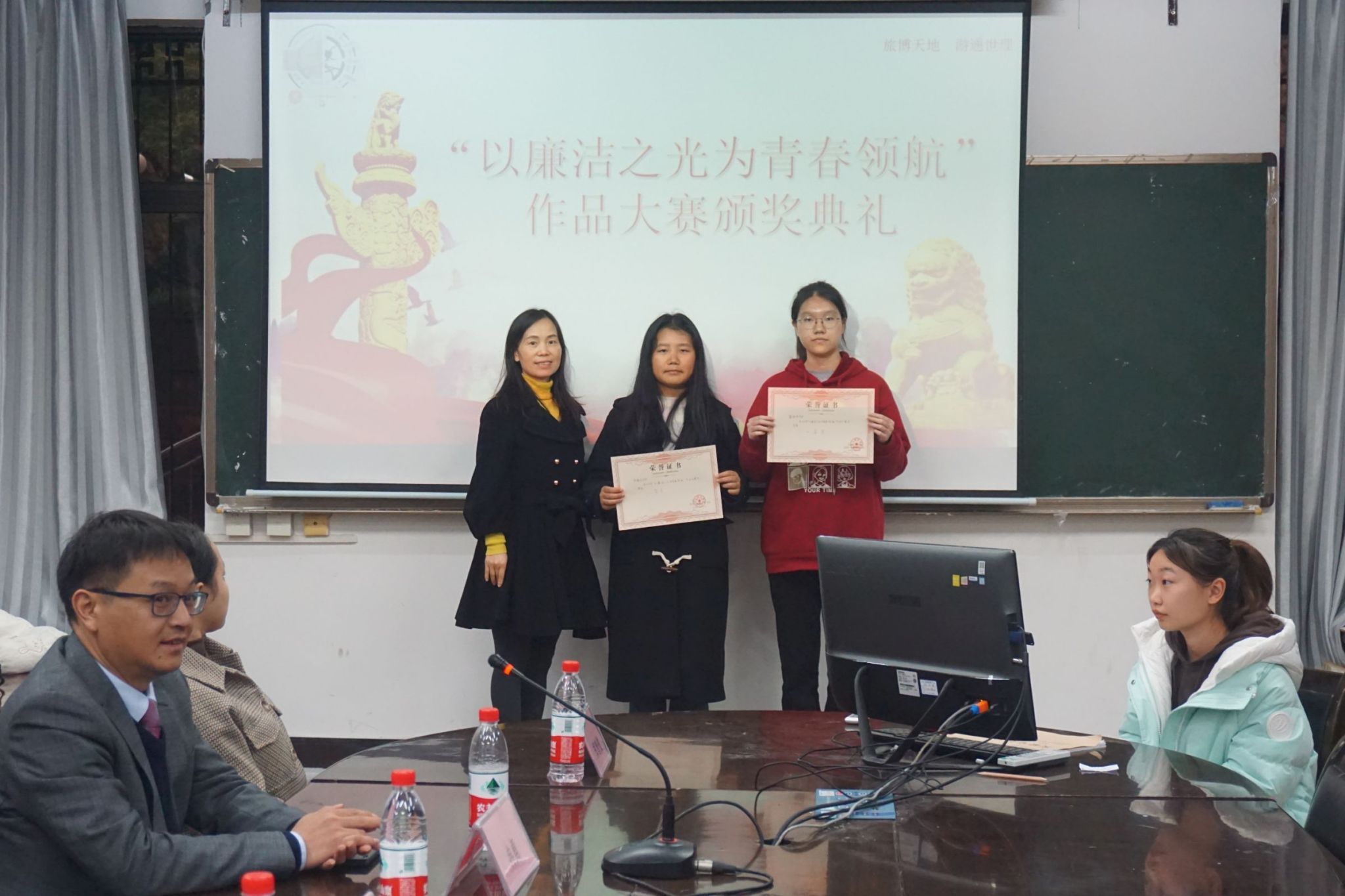 首先,徐秀云为本次活动致辞,寄语师生要在工作和学习中做到“守得住初心,分得清公私,守得住规矩,守得住小节”,让廉洁成为一种态度,成为一种习惯。接着,与会领导和老师为获奖的同学颁发了荣誉证书。冉勇以廉洁诚信为主题为同学们讲了廉洁党课,强调了廉洁诚信在个人道德品质、人际关系与职业发展中的深远影响,希望青年人在实现个人发展过程中要高度重视廉洁诚信建设。