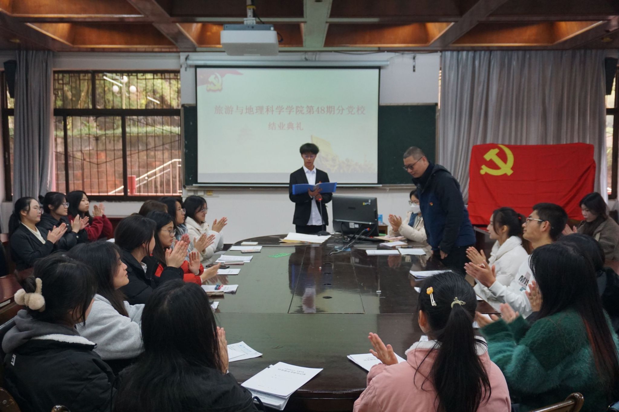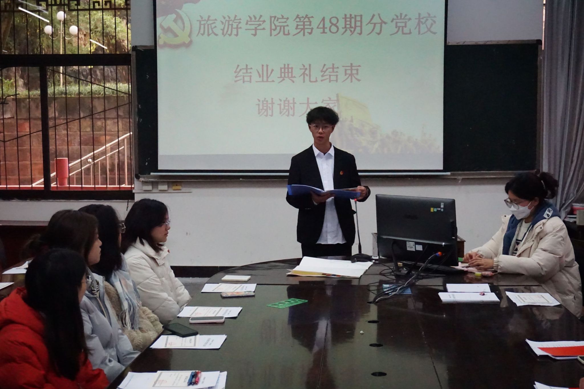 本网讯(文/武鹏飞、图/刘涛)12月7日,BB贝博艾弗森官方网站在旅院楼102教室举行了第48期分党校结业典礼。BB贝博艾弗森官方网站党委专职组织员、第一学生党支部书记孟凡帅和第48期分党校学员参加了结业典礼。