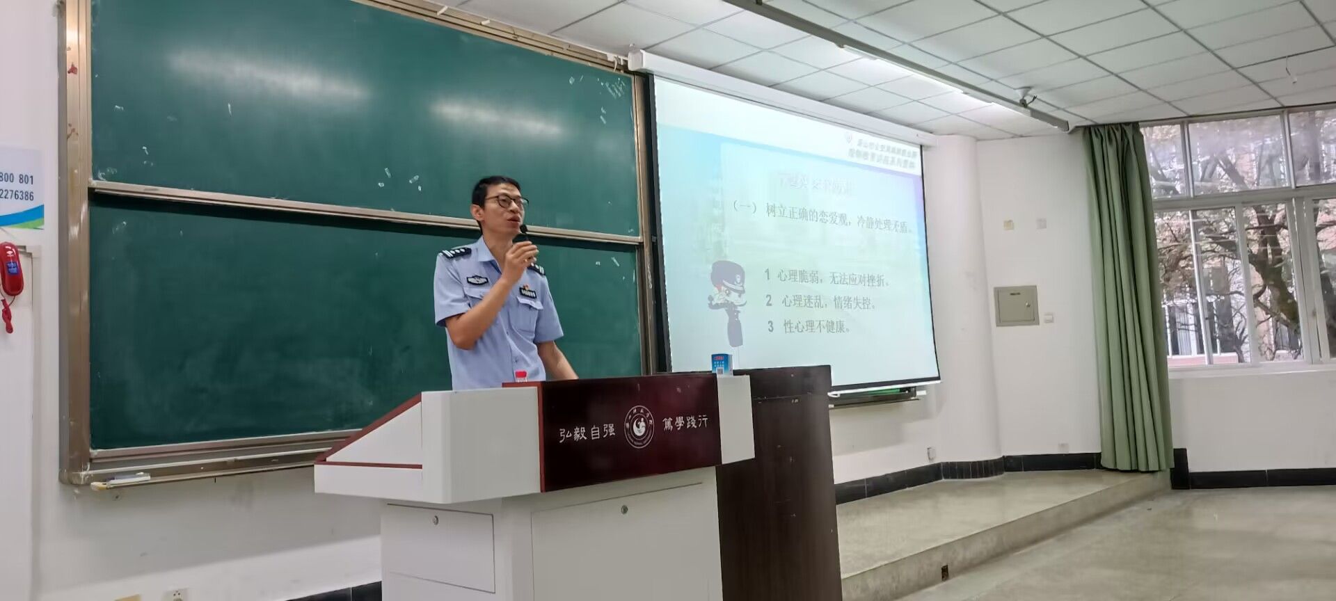 本网讯(文/苏杰,图/江馨雨)9月11日,BB贝博艾弗森官方网站邀请乐山市公安局海棠派出所李毅警官在行知楼114教室为学院2023级新生开展了安全防范教育。本次安全防范教育由2023级辅导员江纳主持。