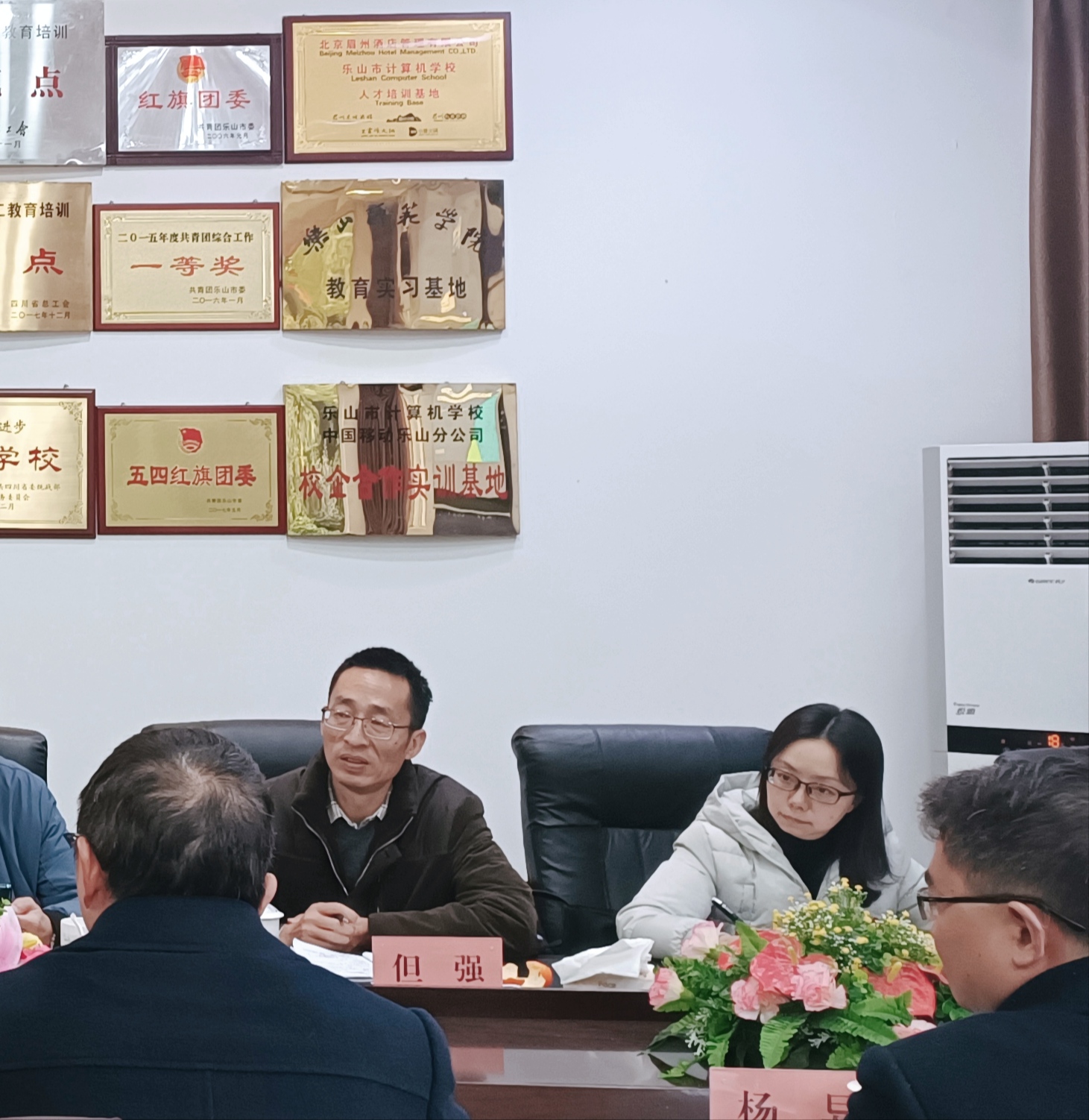 在乐山市计算机学校,胡飞扬校长等校领导对但强一行的到来表示热烈欢迎,对与贝博官网的长期教育实习合作表示非常满意。实习生代表就实习基地提供的工作平台、指导老师的悉心指导和学校的教育培养表示衷心的感谢,汇报了实习期间的工作、遇到的困难和取得的进步。