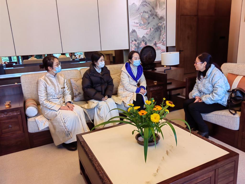郭剑英一行与学生进行交流,了解他们的工作与生活情况,听取了同学们的实习感悟,并与酒店负责人、贝博官网2000级旅游管理专业毕业的校友葛俊进行了交流。实习学生向老师们汇报了实习情况、在工作中遇到的困难和收获的经验。郭剑英对实习生的实习表现和专业能力的进步表示了肯定,鼓励同学们珍惜实习机会,大胆实践,展示乐师学子良好风貌,圆满完成实习任务。葛俊也高度赞扬了学生在实习期间踏实勤奋、乐于学习的优异表现。