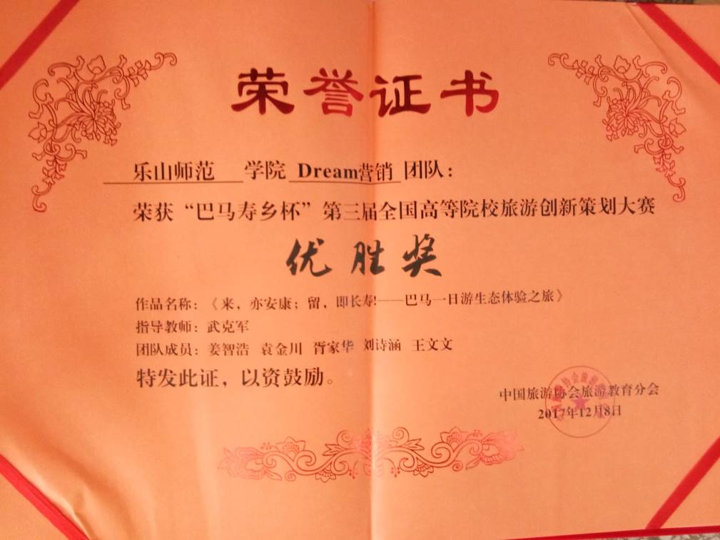 贝博官网旅游学院武克军博士带队(学生姜智浩、袁金川、胥家华、刘诗涵、王文文)通过激烈的初赛,最终进入决赛,作品主题为“来亦安康,留即长寿”-巴马一日游生态体验之旅。经过老师和同学们6个月的努力,作品入围20强,在最终决赛中取得第14名,获得优胜奖的好成绩!