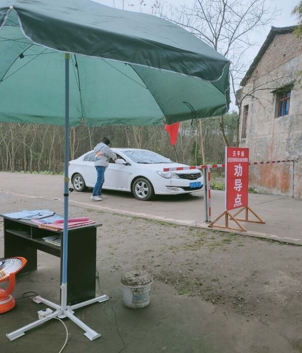 虽说是在家足不岀户就是为国家做贡献,但鞠民静脑子里老在想一件事,那就是想要成为一名志愿者,在这种特殊情况下,为村里的防疫工作贡献自己的绵薄之力。家人知道她的想法后,非常支持。于是她向村党支部提出了志愿申请,报名在村口做防疫工作志愿者,她的第一项任务是协助村党支部搭建帐蓬,另外一项工作任务是每天登记进岀村民信息,检查出入证,测量体温,做好一切消毒工作。