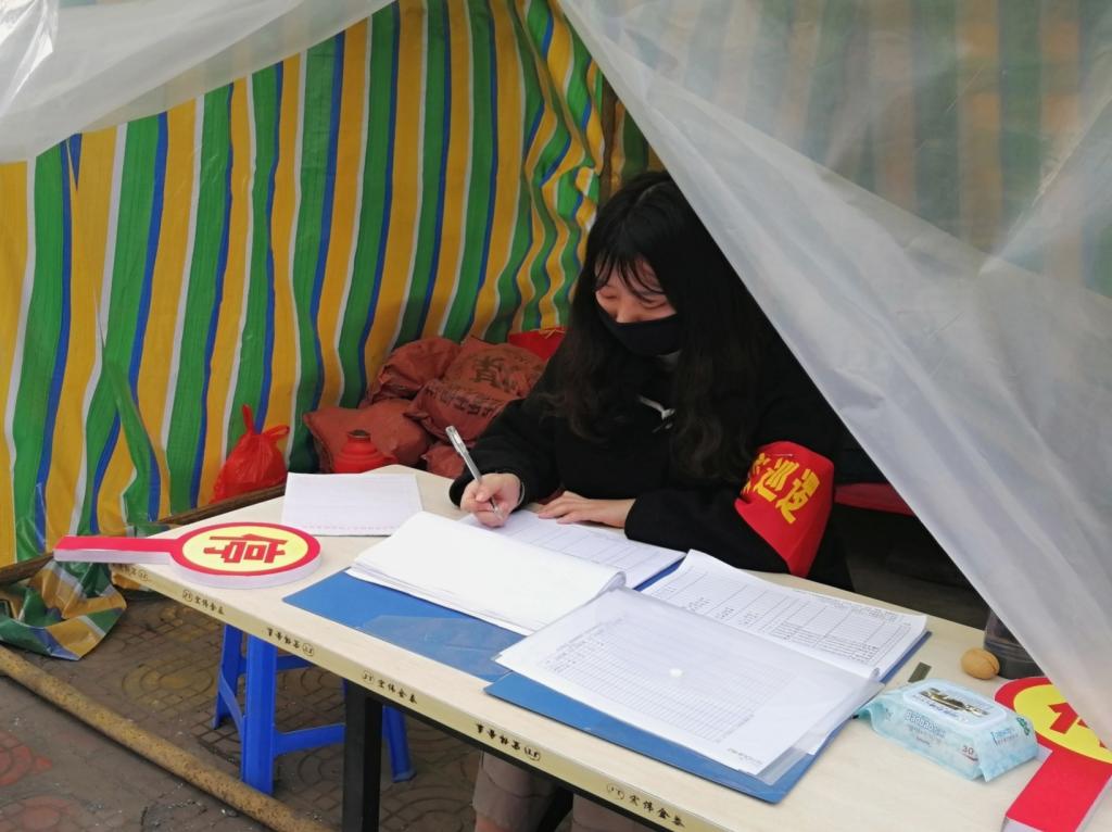 在问到郭雨晴志愿服务期间的主要工作时,她回答:“在普子岭社区卡点当志愿者的这10天里,我主要负责的是登记进入车辆的信息,让驾驶员出示身份证或驾驶证,登记车牌号、姓名、身份证号码、电话号码,还有此次行程的出发地和目的地。”志愿工作循环如此,枯燥无味,但她深知在疫情面前,这是她的责任。