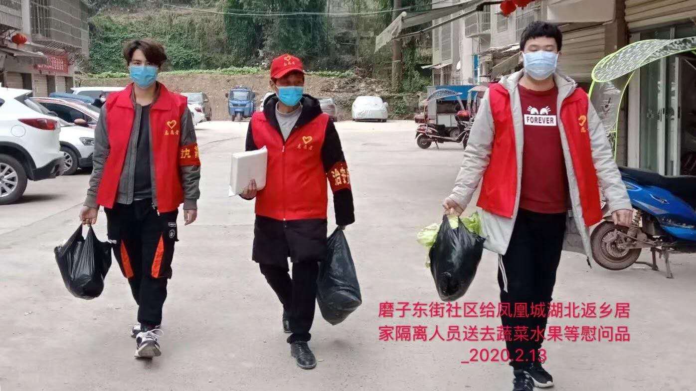 报名第二日下午,李旭峰跟随社区高书记巡逻几个小区,经过凤凰城小区和龙角丽景小区时,高书记向工作人员了解到防疫情况并且进行了一番慰问。而让李旭峰感动的是,小区里面的农民工志愿者也在小区看守,这时他真正理解了一句话:“没有人生来就是英雄,但总有人用平凡成就伟大”。随后李旭峰与高书记为凤凰城的一户湖北返乡居民送了蔬菜与水果等慰问品。对于社区工作人员来说这些工作是很辛苦的,并且每一天都在做着重复的事情,虽然比较无聊,但是很有意义。所有人都坚信着,只要大家万众一心、众志成城,就一定能够打赢这场疫情防控阻击战。