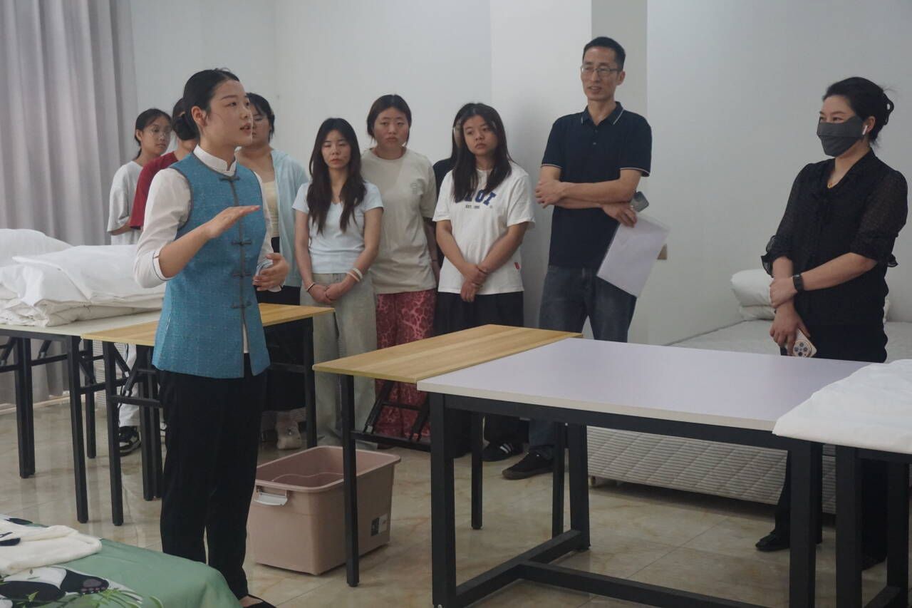本网讯(文、图/邓伟祥)5月22日,BB贝博艾弗森官方网站于旅游综合实训中心举办了酒店管理专业技能展示活动。学院党委书记徐秀云,党委副书记、院长郭剑英,副院长但强以及旅游管理、酒店管理专业的教师和2023级酒店管理专业一班全体学生共同参加了此次活动。