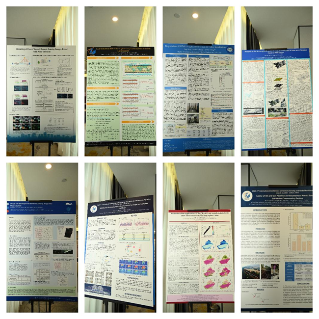 在本次会议中,特别设置了海报展示环节,吸引了来自深圳大学、天津理工大学、哈尔滨工程大学、桂林理工大学等国内知名高校的学者参与。展示的研究成果丰富多彩,充分展现了前沿的科研动态和创新思维。研究内容主要涵盖近红外融合、城市场景、CRA40/Land再分析数据、DISP影像、地图辅助等多个领域。