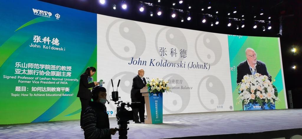 10月20日上午, 由世界研学旅游组织主办的“读万卷书,行万里路”2020世界研学旅游大会在乐山大佛剧院开幕,来自全球三大洲、13个国家和地区、中国23个省市专家学者、政府部门、行业协会、研学基地、教育机构、研学旅游服务商、旅行社等300多人参会,大家共谋世界研学旅游发展的新格局。旅游学院院长郭剑英教授带领学院武克军、孙永兴、朱林富等教师应邀参加了开幕式。