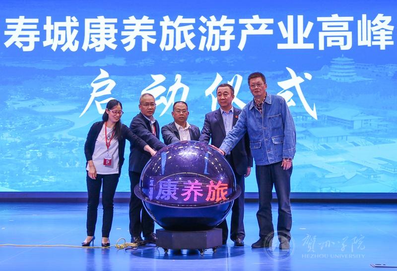 在启动仪式上,郑向敏作《全域旅游背景下的康养旅游发展》主题报告,吴郭泉、郑向敏、郭剑英、吴忠军、莫世群共同启动水晶球,宣布“首届寿城康养旅游产业高峰论坛”正式启动。