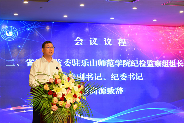 省纪委监委驻乐山师范学院纪检监察组组长、党委副书记、纪委书记彭尚源致辞