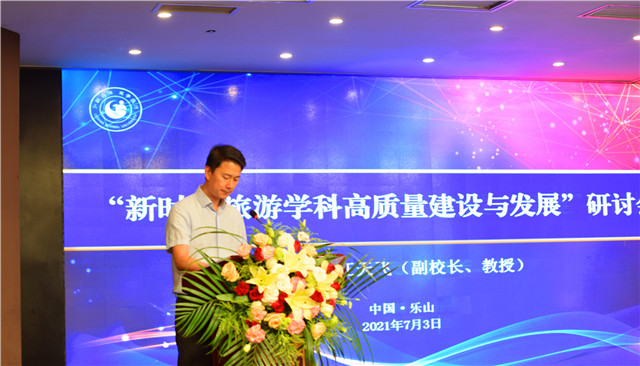 本网讯(文/郭剑英、孙永兴、饶智洋、刘凡嘉、刘李,图/成欣、刘凡嘉、饶智洋、刘李)7月2日至4日,“新时代旅游学科高质量建设与发展”研讨会在乐山召开。会议由教育部学校规划建设发展中心指导,全国应用型课程建设联盟旅游专业委员会主办,乐山师范学院、四川旅游发展研究中心承办。来自浙江大学、厦门大学、南昌大学、华侨大学、东北财经大学等72所高校、11家企业的近200名专家、教师代表汇聚一堂,共商新时代旅游学科高质量建设与发展。