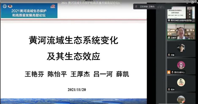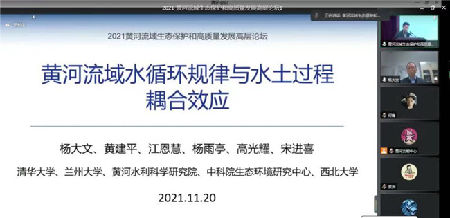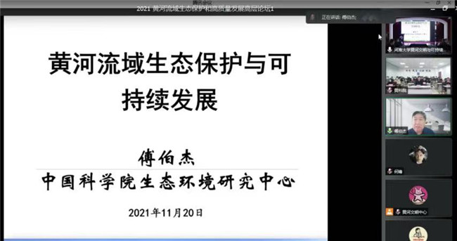 本网讯(图、文/夏军)为贯彻落实习近平总书记在黄河流域生态保护和高质量发展座谈会上的重要讲话精神,11月20日,河南大学联合中国地理学会、黄河水利委员会黄河水利科学研究院、河南省发展和改革委员会、河南省文物局、郑州市人民政府共同举办了“2021 黄河流域生态保护和高质量发展高层论坛”。此次论坛汇聚国内一流专家学者聚焦探讨黄河流域生态保护和高质量发展,贝博官网刘洪江教授、夏军博士参加了在线会议。