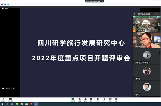 按照四川研学旅行发展研究中心2022年度重点课题立项顺序,成都理工大学傅广海、西华师范大学王云秀、南充职业技术学院李巧玲、五星中学刘灵、南充市特殊教育学校胡民拥分别进行开题汇报,与会专家充分肯定了五项课题设计、取得的前期成果,并对下一步研究提出了意见和建议。