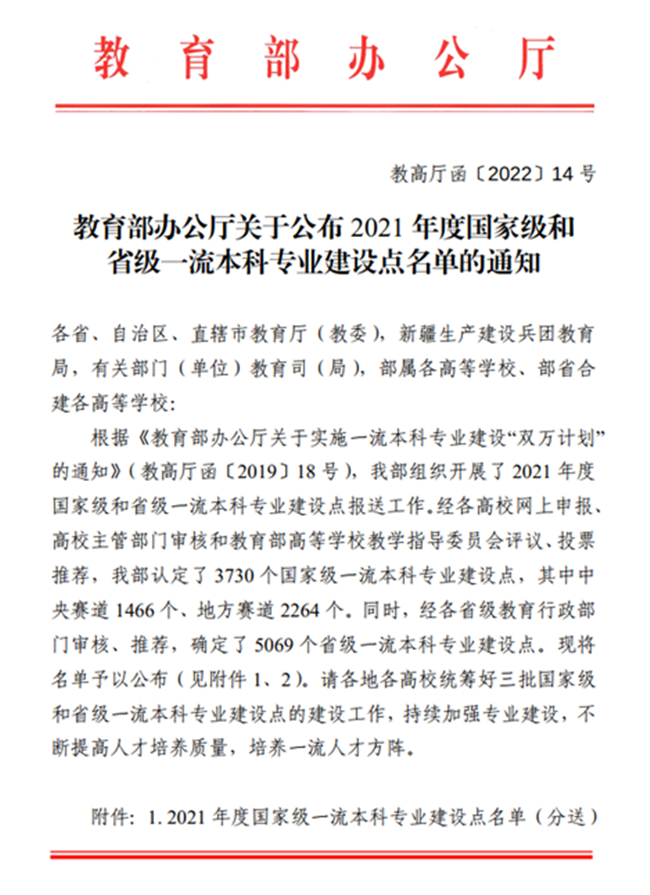 国家级一流本科专业建设点