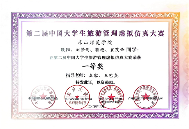 本次比赛共有163所高校、526支队伍、近3000名青年学生参与。经过一个月的初赛激烈角逐后,有224支队伍、近1200名学生成功晋级决赛。贝博官网欧阳、刘梦雨、蒋艳、袁茂玲四位同学组成的团队代表学校参加决赛。决赛队伍在南沙开展为期五天的紧张比拼,共同探讨和解决旅游业面临的新问题,为全国旅游行业和南沙文旅产业提供新思路、新模式和新方案,在南沙与全国旅游行业从业者共享赛事动态和研究成果。最终,贝博官网团队获第二届全国大学生旅游管理虚拟仿真大赛一等奖。欧阳同学获得“i南沙 正青春”广州南沙全域游打卡短视频挑战大赛优胜奖。