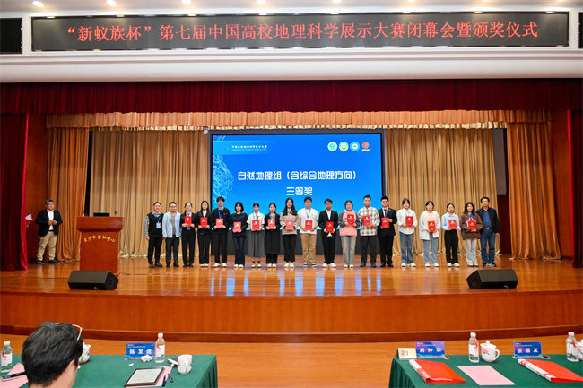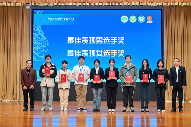 本网讯(文、图/戴琛城、孟凡帅、乔恒忠),10月25-27日,中国地理学会、中山大学地理科学与规划学院主办,湖南师范大学地理科学学院承办的“新蚁族杯”第七届中国高校地理科学展示大赛全国总决赛在湖南省长沙市圆满落幕。贝博官网BB贝博艾弗森官方网站地理科学、人文地理与城乡规划专业戴琛城、刘淼、邓佩佩、高珠梅、张耀元同学组建的“岷江解码队”(指导老师:乔恒忠、孟凡帅,领队:孙永兴),作为四川省唯一闯入全国总决赛的参赛队伍,荣获自然地理组(含综合地理方向)全国总决赛三等奖,戴琛城同学荣获“最佳表现男选手奖”。
