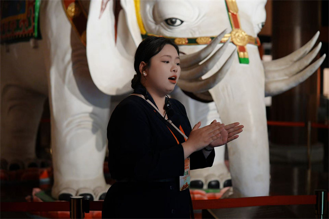 在 4 月 26 日的复赛环节,学院参赛选手与来自全国各地的精英同场竞技。大众组的比赛在峨眉山博物馆、报国寺等点位展开,学院选手们抽签确定讲解线路与点位后,迅速调整状态,以自信饱满的姿态投入比赛,最终以精彩的讲解赢得现场观众阵阵掌声,也获得了评委们的高度认可,成功晋级决赛。