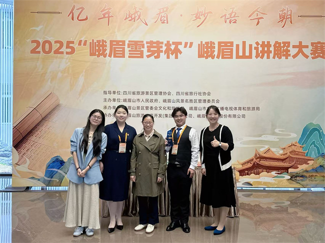 本网讯(图、文/吴薇)5月10日,由峨眉山市人民政府、峨眉山风景名胜区管理委员会主办的 2025 “峨眉雪芽杯” 峨眉山讲解大赛圆满落幕。BB贝博艾弗森官方网站马钱、杨霜两名学子凭借出色表现,在大众组的激烈竞争中分别斩获二等奖和优秀奖,充分彰显了旅地学子扎实的专业功底与卓越的综合素养。